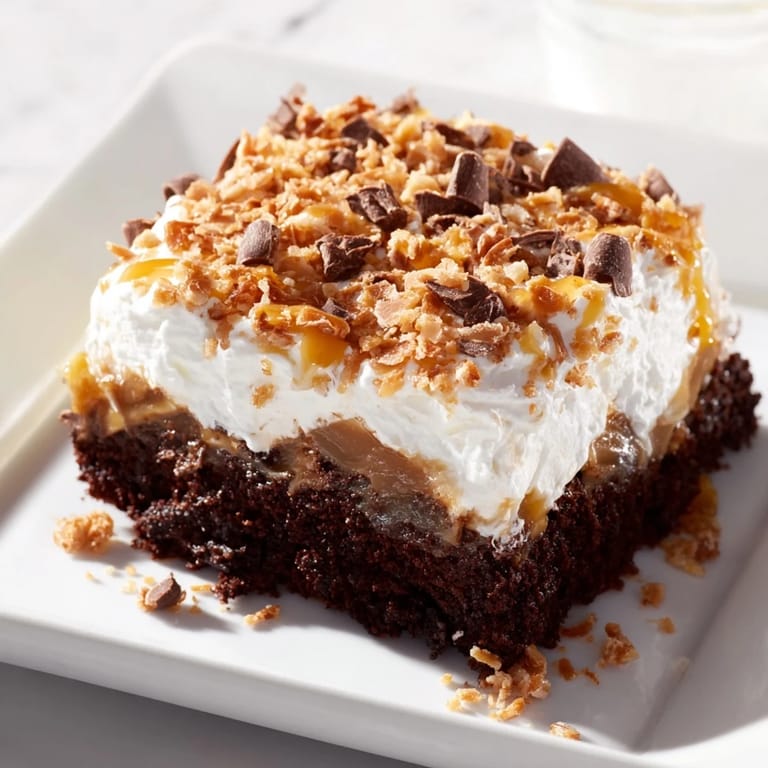 If you want to switch things up, try a chocolate fudge cake mix for an even deeper chocolate flavor, or swap the caramel for dulce de leche if you want something a little richer. You can also add chopped pecans or walnuts on top for extra crunch, or use homemade whipped cream if you're feeling fancy. I've made it with peanut butter chips instead of chocolate once, and it was a hit with my brother who loves that combination.