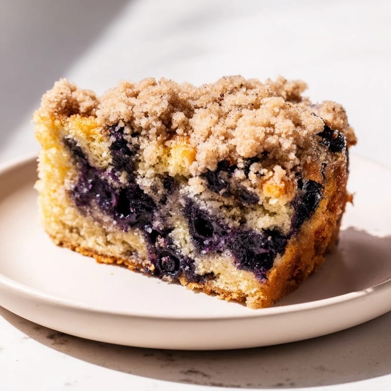This cake gets its soul from the blueberries, and how you handle them changes everything. Fresh blueberries are wonderful, but frozen ones are actually the secret weapon here because they stay firm during baking instead of bursting open and bleeding juice throughout the crumb, which turns the whole thing soggy and purple. The tartness of the berries cuts through the sweetness of the cake and the cinnamon-brown sugar crumble, which is why this feels like breakfast instead of pure dessert.