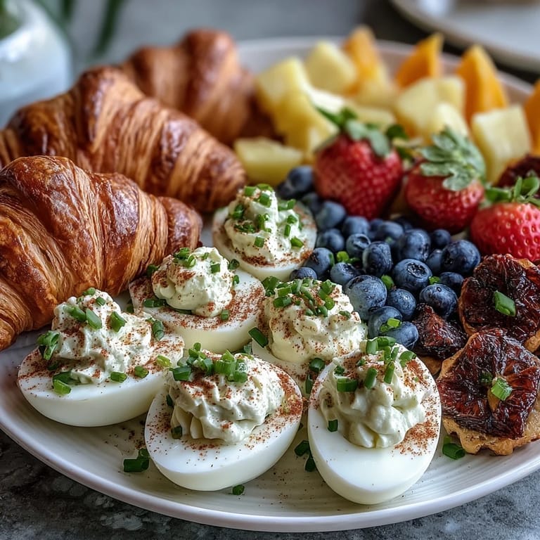 Save to Pinterest Bursting with color and flavor, this Easter Brunch Board came together after I woke up to birdsong and the anticipation in my kids' laughter as they hunted for eggs while I assembled the platter. It wasn&39;t planned months in advance—just a spontaneous urge to layer something beautiful and shareable on the table. Mixing deviled eggs, fruit, and pastries became my little trick for making breakfast feel like a celebration. The scent of melting butter and tangy strawberries felt like spring itself had stepped into the kitchen. I still smile recalling how everyone hovered, asking what to try first.
