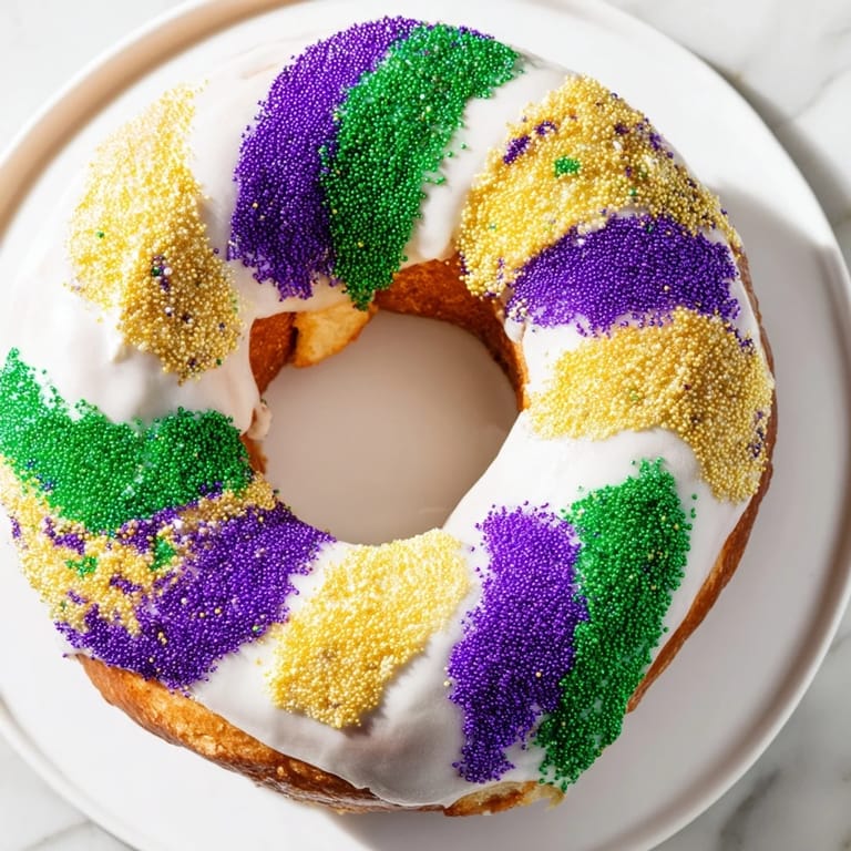 I brought a King Cake to a dinner party once thinking it would be a nice touch, a little Louisiana flair on a cold February night. The moment I set it down on the table—still warm, those colors gleaming under the kitchen lights—everyone's eyes lit up like kids. We went around the table taking slices with theatrical tension, waiting to see who would find the baby, and when someone's bite suddenly hit plastic, the whole room erupted. It wasn't fancy or Instagram-worthy, but it became the story everyone retold for months afterward.
