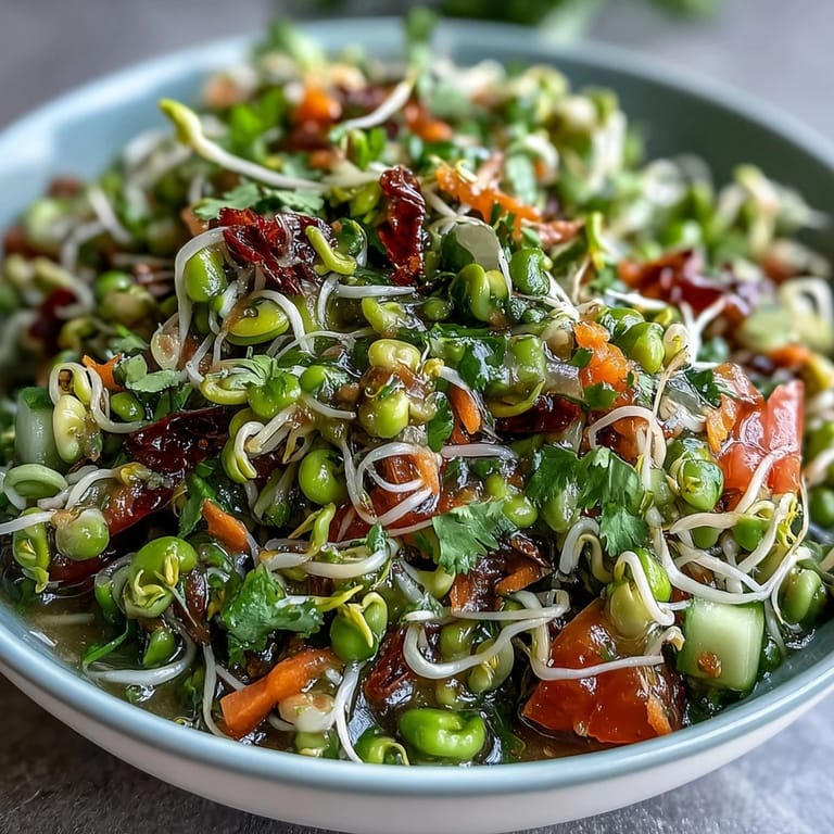 Save to Pinterest My neighbor showed up one Tuesday with a mason jar of sprouted seeds she'd been growing on her windowsill, insisting I do something with them before they got boring. That afternoon, I tossed them together with whatever crisp vegetables I had lying around, drizzled them with a simple lemon dressing, and suddenly understood why she'd been so excited about those tiny green shoots. It's one of those salads that tastes far more alive than it has any right to, bursting with texture and a brightness that makes you feel genuinely good while eating it.