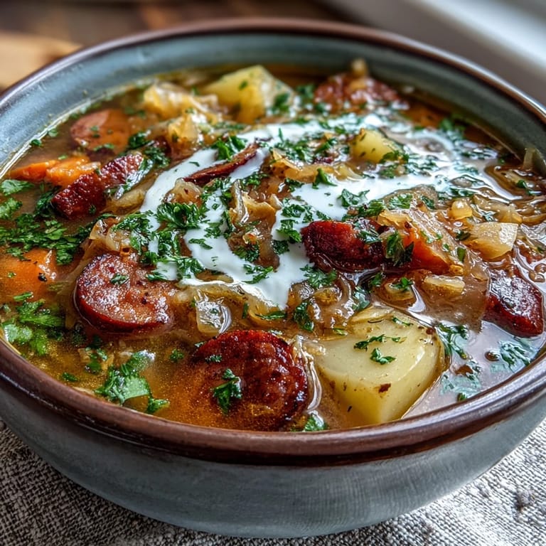 Save to Pinterest The air in the kitchen turned sharp and bright as soon as I opened the jar of fermented cabbage last Tuesday. I used to think of this soup as just a cold weather staple until a friend served it to me on a humid afternoon. It somehow feels cooling and warming all at once. The way the vinegar notes cut through the smoky fat of the bacon is something I crave now. Every spoonful feels like a reset button for my system.
