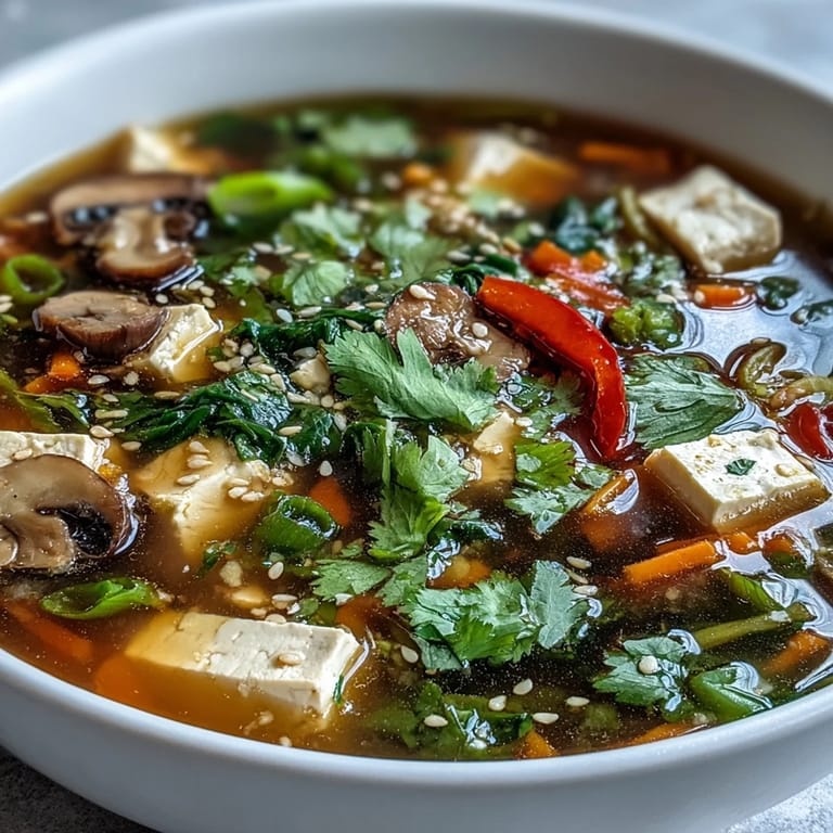 Save to Pinterest I discovered this soup on a quiet Tuesday evening when my roommate came home with a bag of silken tofu and challenged me to make something that wasn't fried. What started as improvisation became my go-to comfort meal, the kind where everything comes together in under thirty minutes and somehow tastes like it's been simmering for hours. The broth is so clean and gentle that it lets each vegetable speak for itself, while the tofu melts into something almost custard-like if you're careful with it. There's something deeply satisfying about a bowl this simple.